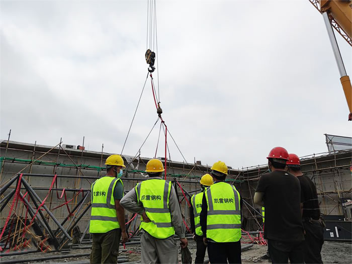 6.为确保.资阳加油站球形网架安装顺利,应有详细的资阳施工组织设计。网架安装必须保证结构的稳定性和不产生的附加变形。